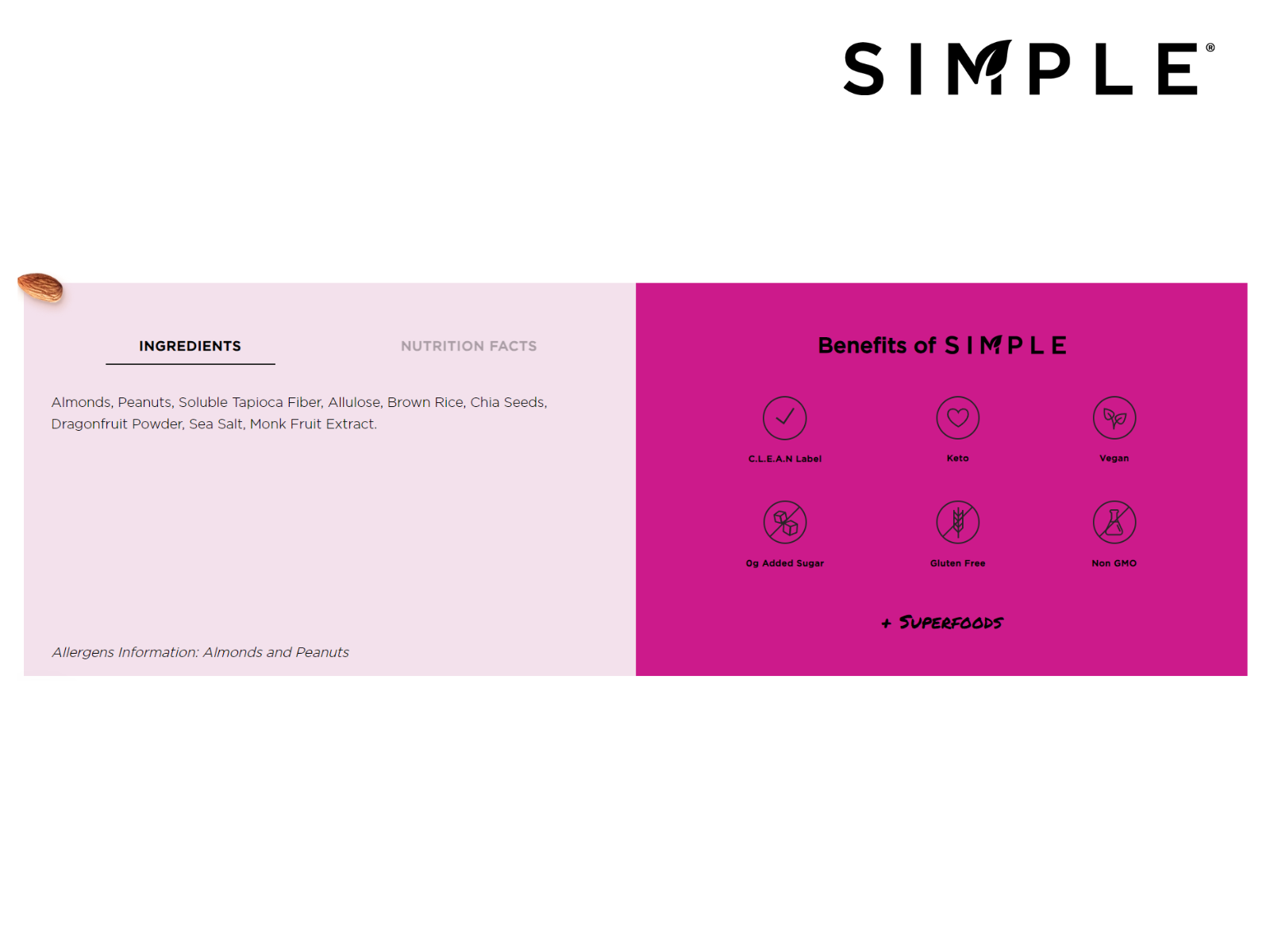 SIMPLE: Almond & Dragonfruit – 12 bars